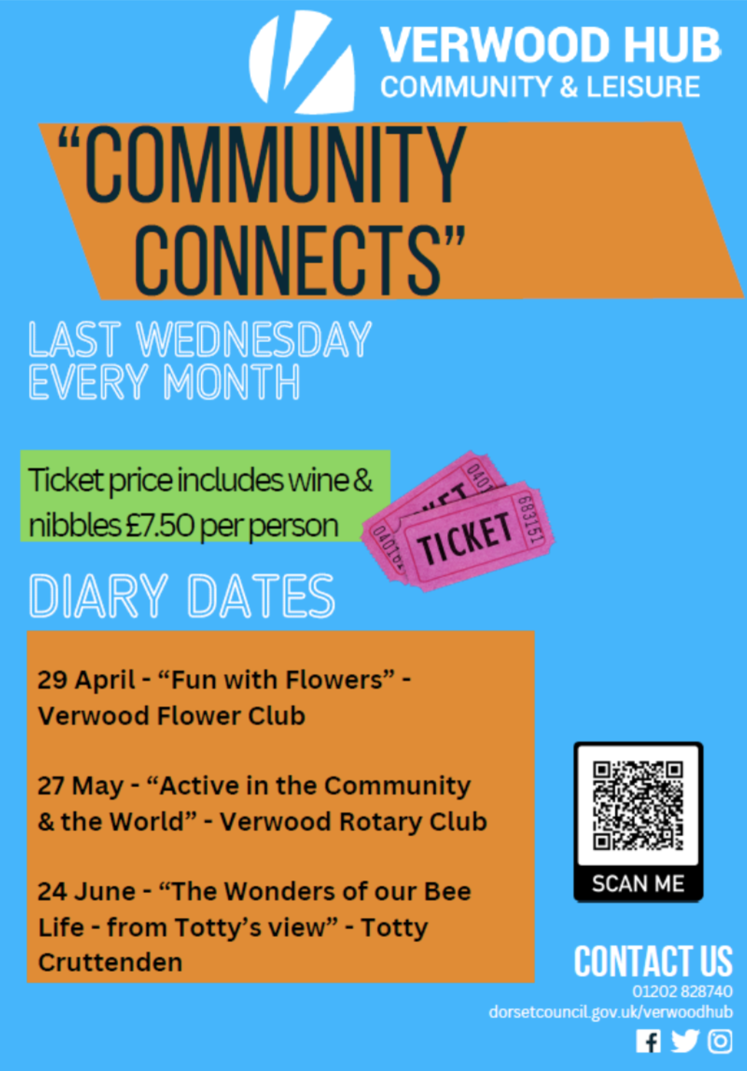 Tickets are available on a first come, first served basis and include a drink and nibbles. More details are available from the Verwood Hub on 01202 828740.